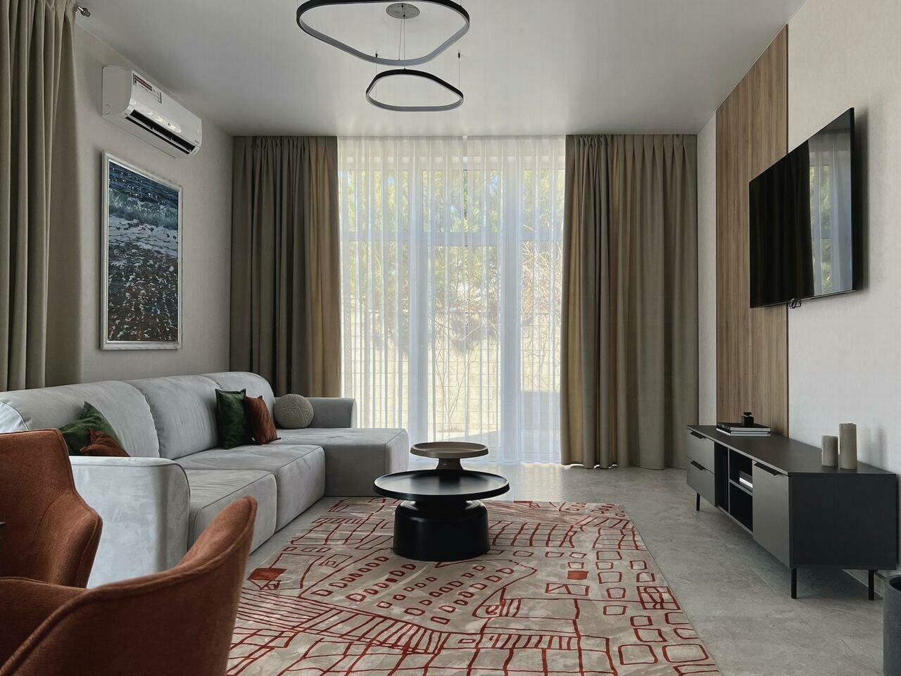 Первая аренда, объект ранее не использовался. Сдается дом, один этаж, 4 комнаты (3 спальни и гостинная) на длительный срок с удобной транспортной доступностью. Площадь 142 кв.м., участок 3 сот. Одноэтажный дом, газобетонный блок. Автономное газовое отопление, туалет в доме, электричество 220 вольт, водопровод подключен. Комнаты со свежим дизайнерским ремонтом. Много места для хранения. Выход из кухни-гостинной на террасу. В доме смонтированы теплые полы. Удобный подъезд, асфальтная дорога до въезда во двор. Раздвижные ворота на пульте. Дом оборудован всем необходимым для жизни, включая постельные принадлежности. Сдаём порядочной семье или паре, без вредных привычек. Возможно проживание с животными, обсуждается индивидуально. Залог — в размере месячного платежа. Коммунальные платежи по счетчикам (в стоимость аренды не включены). Также в доме есть: холодильник, телевизор, кондиционер, интернет, сад, стиральная машина и сушильная, мебель в комнатах, мебель на кухне. Подробнее по телефону.