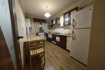 Сдам современную 2-к квартиру на длительный срок с хорошим расположением и тихим районом. Общая 63 кв.м., жилая 40 кв.м., кухня 18 кв.м. 3 этаж 9-этажного дома, панельный. Совмещенный просторный санузел с ванной, есть застекленный балкон, пассажирский лифт, 2 места для хранения вещей, двухконтурный котел, ремонт качественный. Вид на улицу. А также в квартире есть: холодильник, телевизор, кондиционер, интернет, балкон застеклен, стальная дверь, мебель в комнатах, мебель на кухне, стиральная машина. Предпочтительно для одного или пары без детей и категорически без животных. Квартира находится в районе 5 км, рядом СиМол, рынки, транспорт в доступности. Подробнее по телефону.